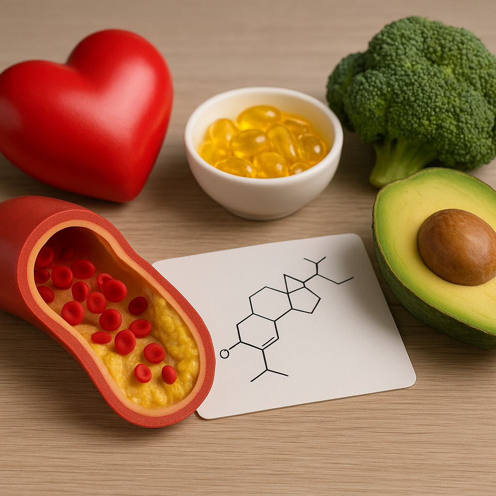 Cholesterol to organiczny związek sterolowy, wytwarzany przede wszystkim w wątrobie, ale również dostarczany z pożywienia. Structurem przypomina tłuszcz, lecz dzięki cząsteczkom hydrofilowym i hydrofobowym rozprowadza się w wodnym środowisku krwi za pomocą lipoprotein. Wyróżniamy cztery główne typy lipoprotein: