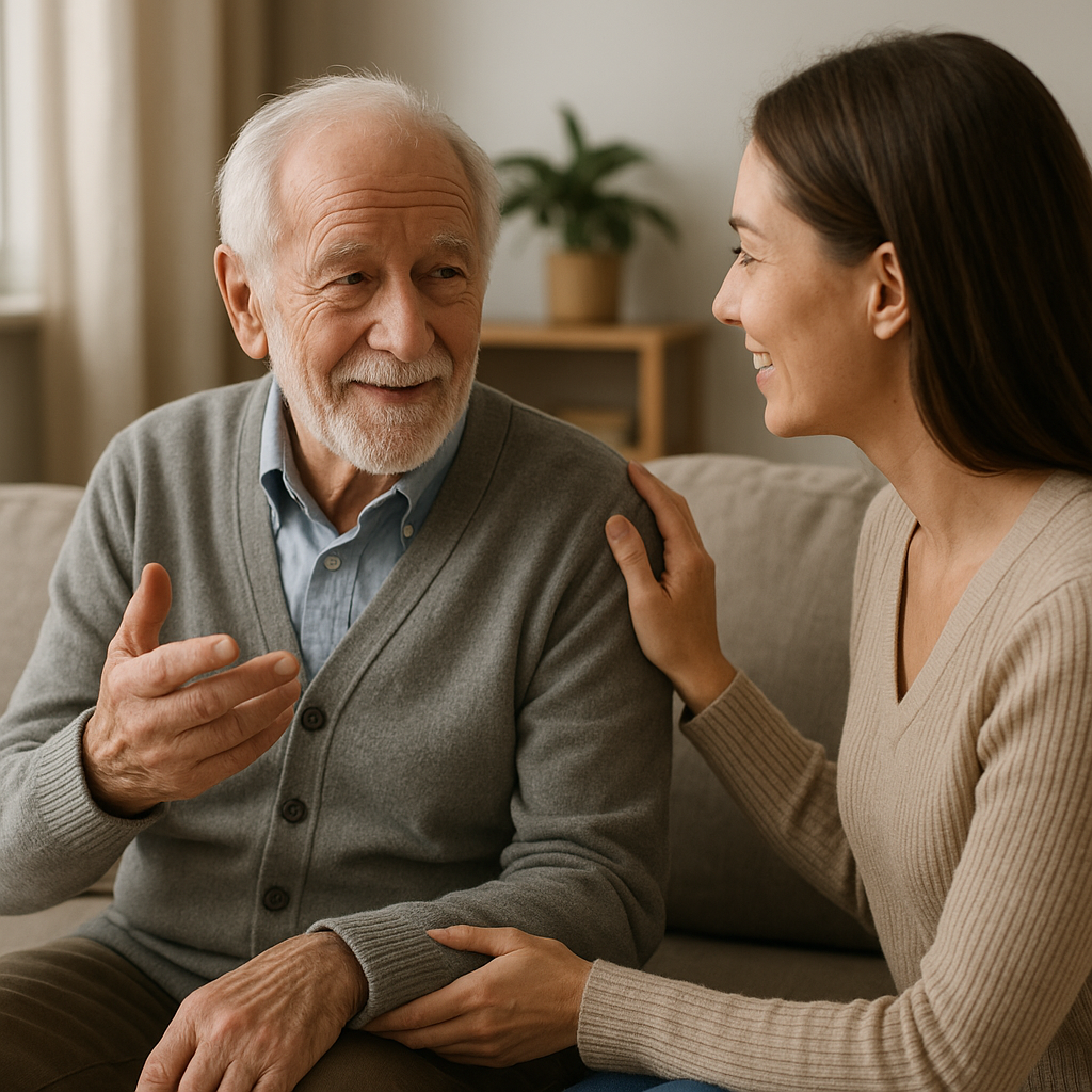 - Aktywne słuchanie – pozwala seniorowi czuć, że jego opinie i emocje są ważne.