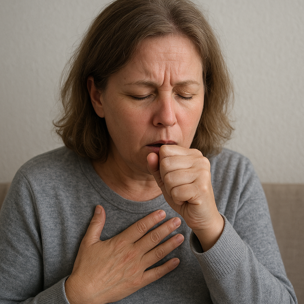 - ból w klatce piersiowej – wynik podrażnienia błony śluzowej i nadmiernego kaszlu;